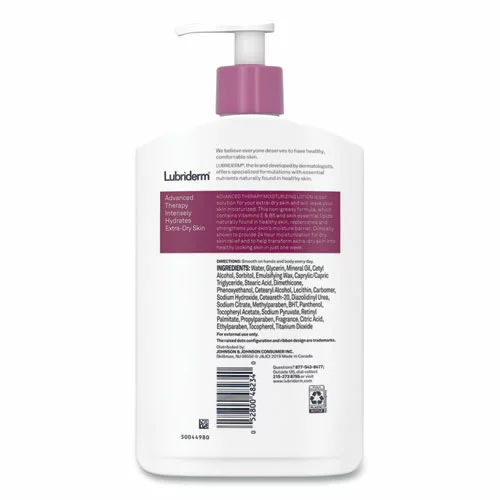 Lubriderm Advanced Therapy Fragrance-Free Daily Moisturizing Lotion helps relieve extra-dry skin. From a dermatologist-developed brand, this moisturizing lotion is clinically shown to help moisturize for 24 hours, and transform dry skin into healthy-looking, more resilient skin. Formulated with vitamins E and Pro-Vitamin B5 plus lipids, this fragrance-free lotion replenishes and strengthens your skin’s moisture barrier. Plus, its formula is non-greasy with a clean, comfortable feel.