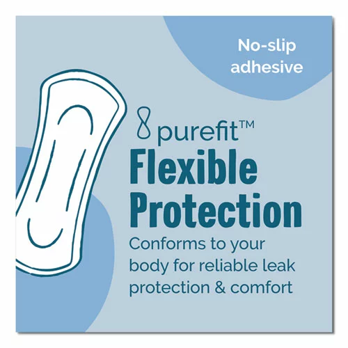 Free & clear pads provide the protection you need without exposing your most sensitive skin to unnecessary chemicals. Innovative PureFit design conforms to your body for reliable, leak-free protection and comfort. Pads are free of fragrances, hypoallergenic, processed without chemicals containing chlorine, and are not tested on animals. Individually wrapped.
