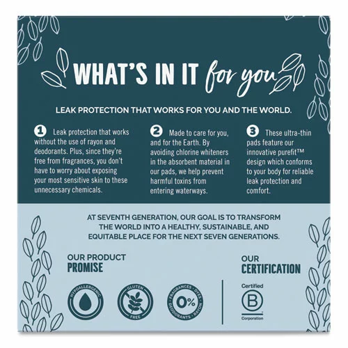 Be the first to review “Seventh Generation® Chlorine-Free Ultra Thin Pads With Wings, Overnight, 14/Pack, 6 Packs/Carton” Cancel reply