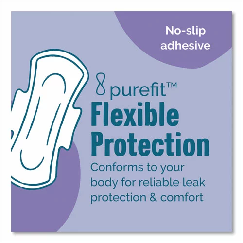 Free & clear pads provide the protection you need without exposing your most sensitive skin to unnecessary chemicals. Innovative PureFit design conforms to your body for reliable, leak-free protection and comfort. Pads are free of fragrances, hypoallergenic, processed without chemicals containing chlorine, and are not tested on animals. Individually wrapped.