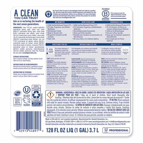 This plant-based Liquid Laundry Detergent is tough on stains in all water temperatures. Get results in High Efficiency (HE) and Standard machines without dyes, brighteners or fragrances. This laundry detergent is made for sensitive skin. Bottle is made with 80% Post-Consumer Recycled (PCR) plastic. Ideal for commercial use including restaurants, offices, day care facilities, schools and hospitality. Use to clean uniforms, napkins, tablecloths, hand towels, clothing, dish rags, aprons and other machine washable items.