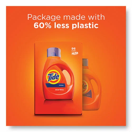 Tide Eco-Box is the same liquid laundry detergent you love but even more powerful. Made with 30% less water, its re-engineered formula gives you more cleaning per drop than Tide Original liquid detergent, plus it’s smaller and easier to store. Features a no-drip twist tap minimizing any leaks and spills.